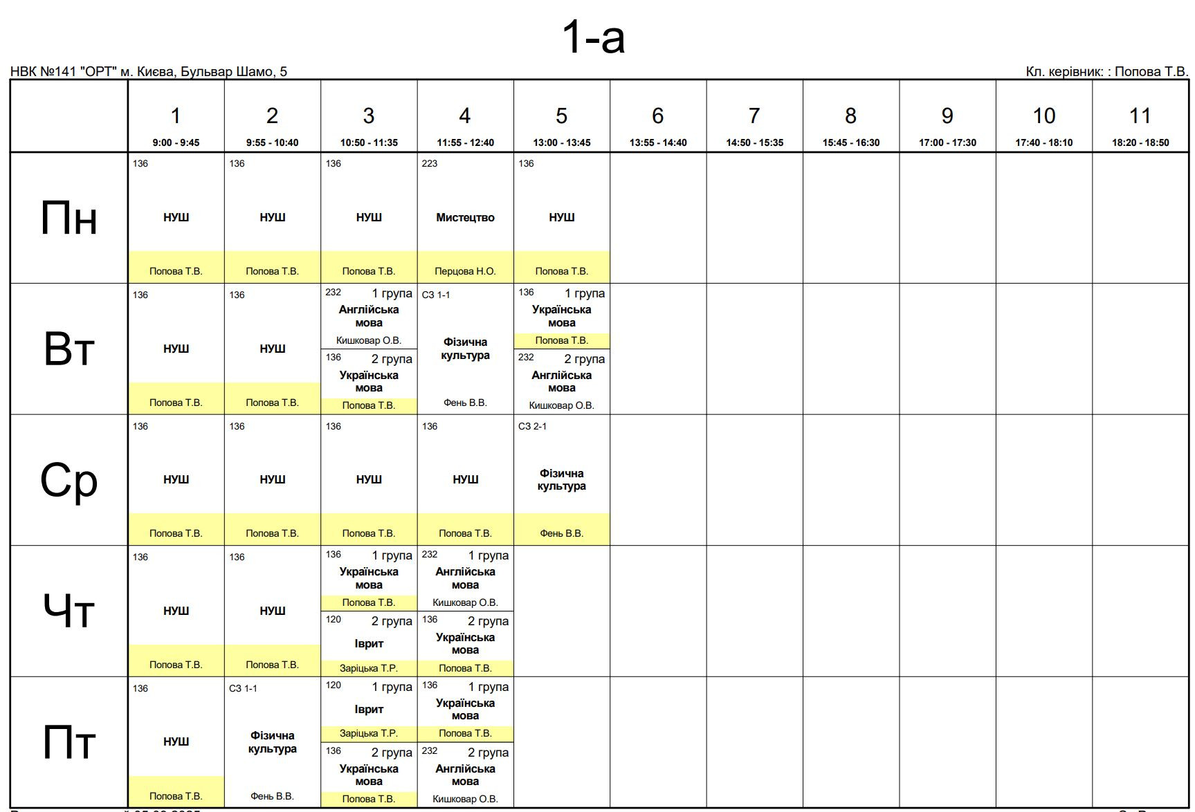 Розклад занять