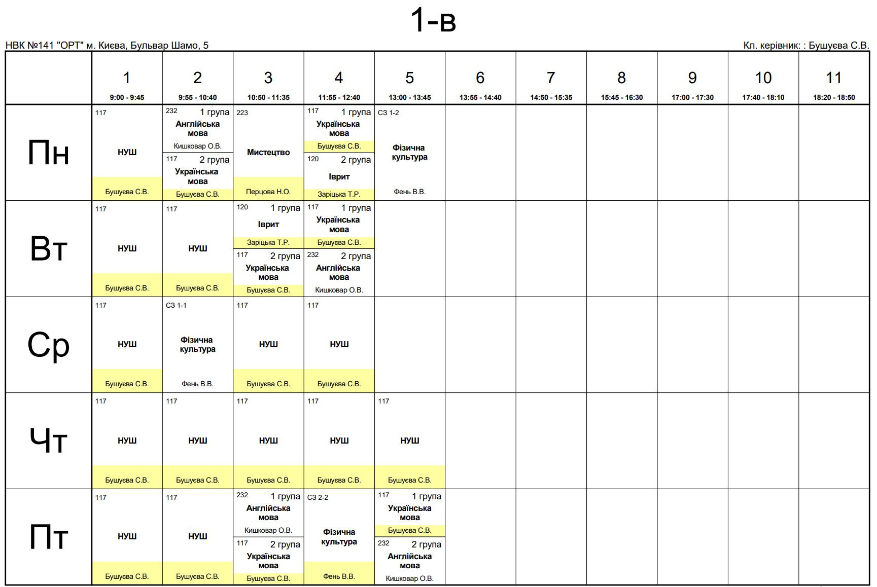 Розклад занять