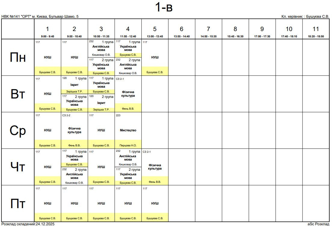 Розклад занять