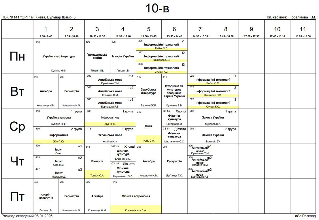 Розклад занять