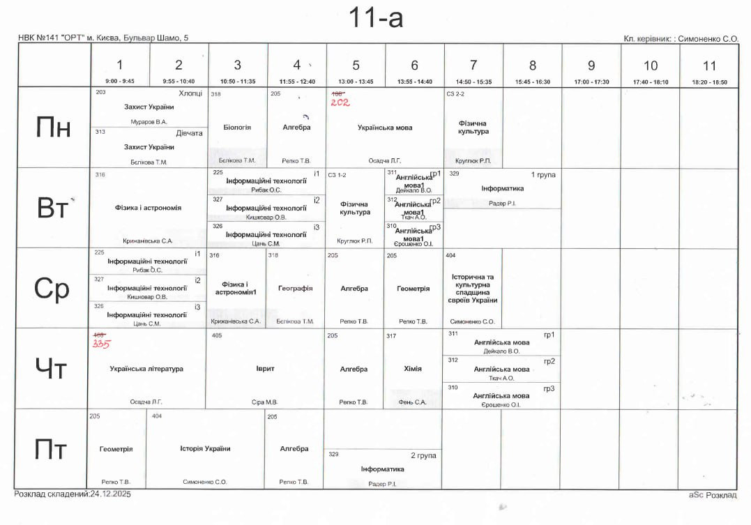 Розклад занять