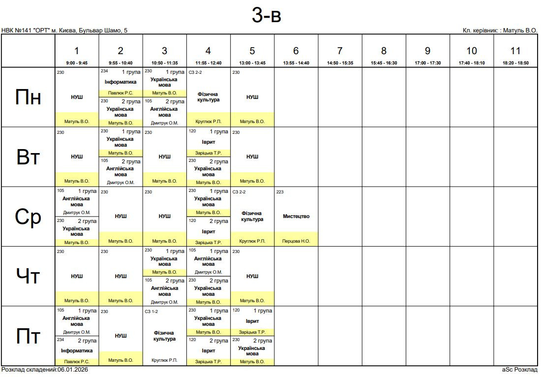 Розклад занять