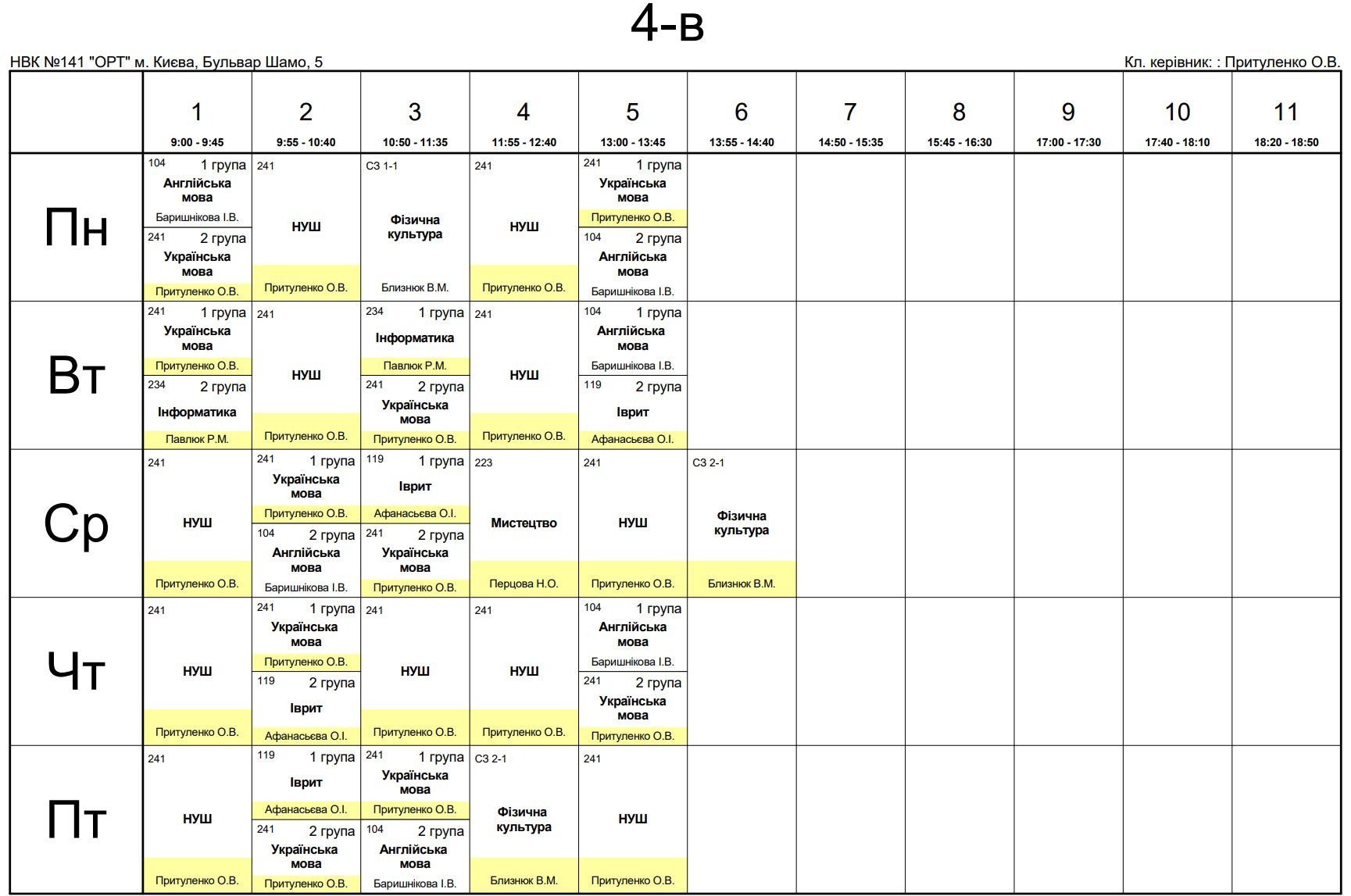Розклад занять