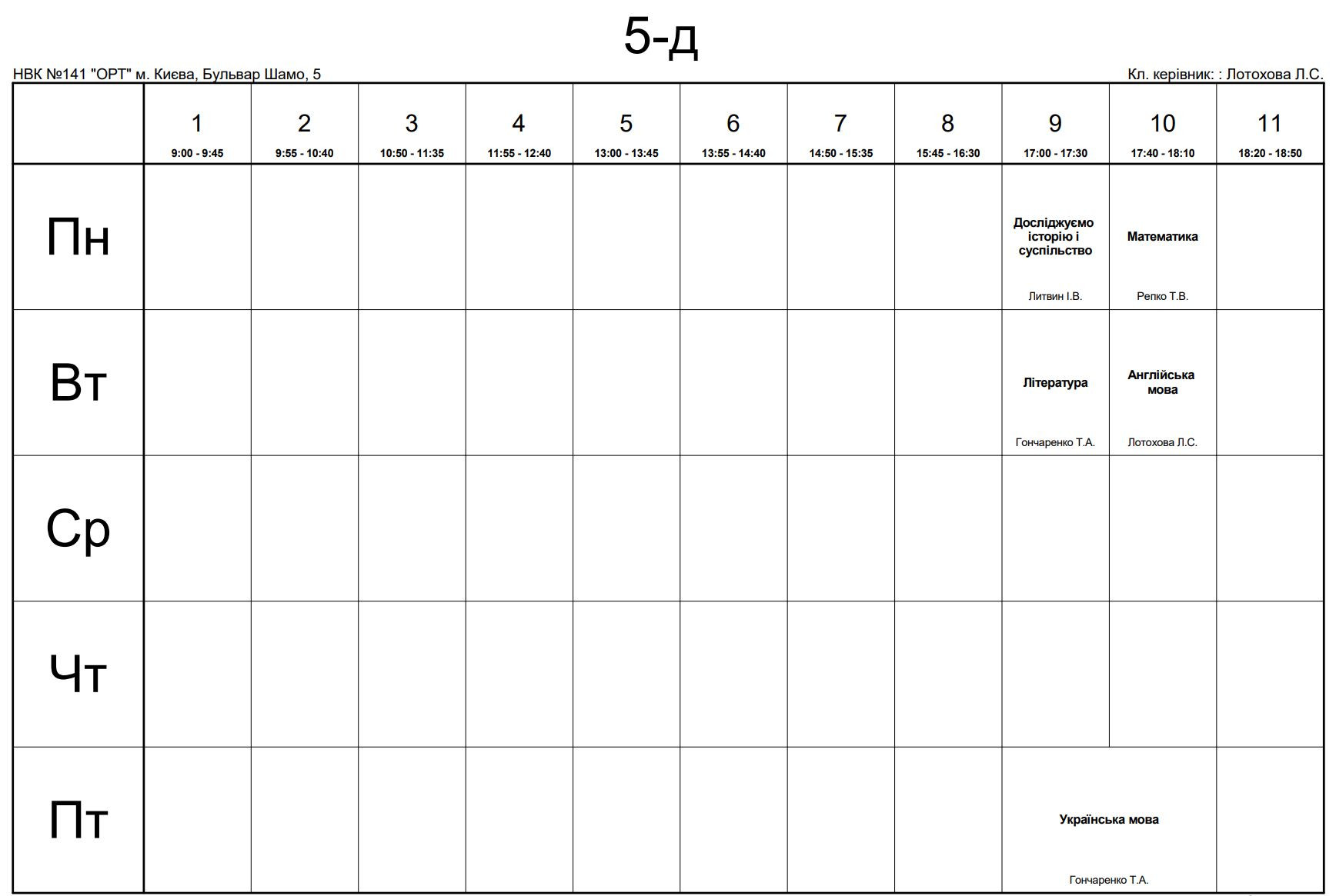 Розклад занять