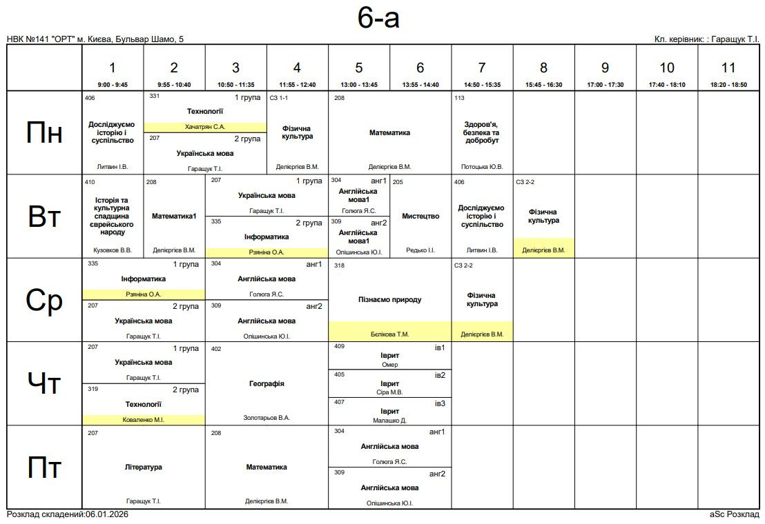 Розклад занять