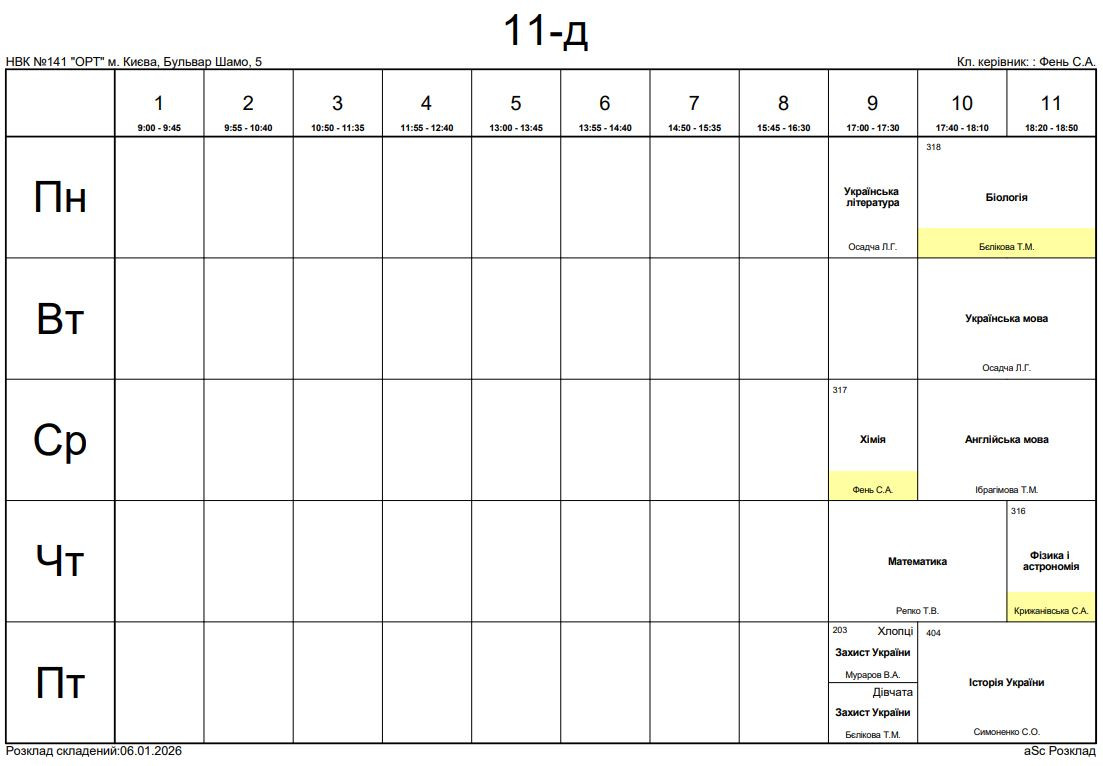 Розклад дзвінків
